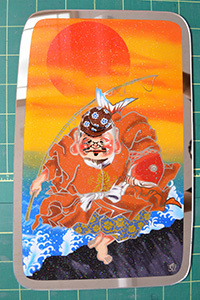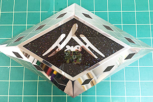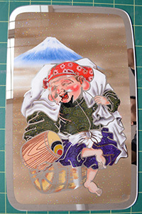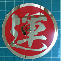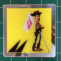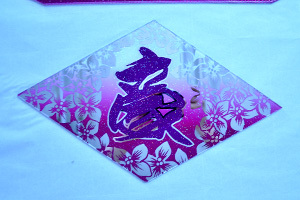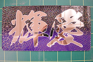 ミラーアクリルからミラー蒸着面を剥離し、着色した技法です。