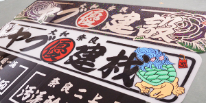 敷き詰めの場合は光を通しづらくなりますので下地一色の長看板などにおすすめです。