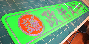 アクリルキャスト板 / アンドンケース:約H250×W1300 / 着色面:裏